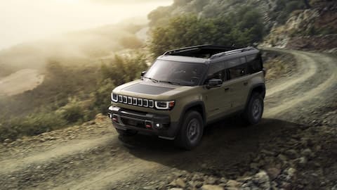 The Recon is built on the STLA Large platform, which also underpins the Dodge Charger Daytona EV and Jeep Wagoneer S. It has a 100.5kWh battery pack that offers an estimated range of up to 402km. The SUV retains Jeep's signature seven-slot grille, albeit illuminated, and comes with U-shaped LED daytime running lights around LED headlights.