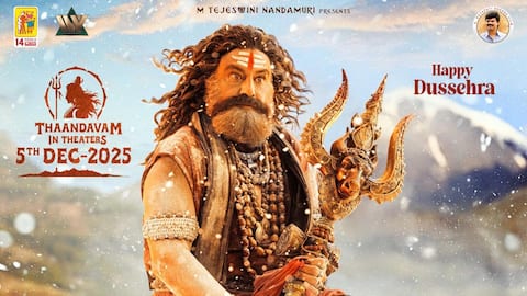 The new poster of Akhanda 2: Thaandavam features Balakrishna in a fierce, warrior-like stance. He is seen striking a pose similar to Lord Shiva, standing on one leg and holding a trident. The image retains the intense Aghora persona from the first installment while also conveying seriousness that hints at the sequel's more ambitious goals. The poster was shared by 14 Reels Plus.