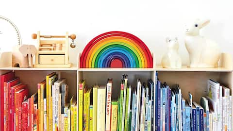 Organize books by color to add vibrancy to your space