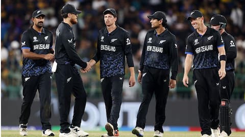 SL's chase was off to a poor start as opener Pathum Nissanka fell to Matt Henry on the very first ball. Spinner Ravindra then came into action, dismissing Kusal Mendis and Pavan Rathnayake on successive balls. This left the Lankans reeling at 29/4. Ravindra became a nightmare for SL, having dismissed Dasun Shanaka and Dushan Hemantha in back-to-back overs. He took 4/27 (4).