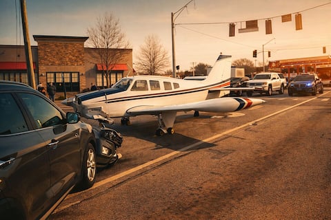 A single-engine plane crash-lands in the middle of a busy Georgia intersection.